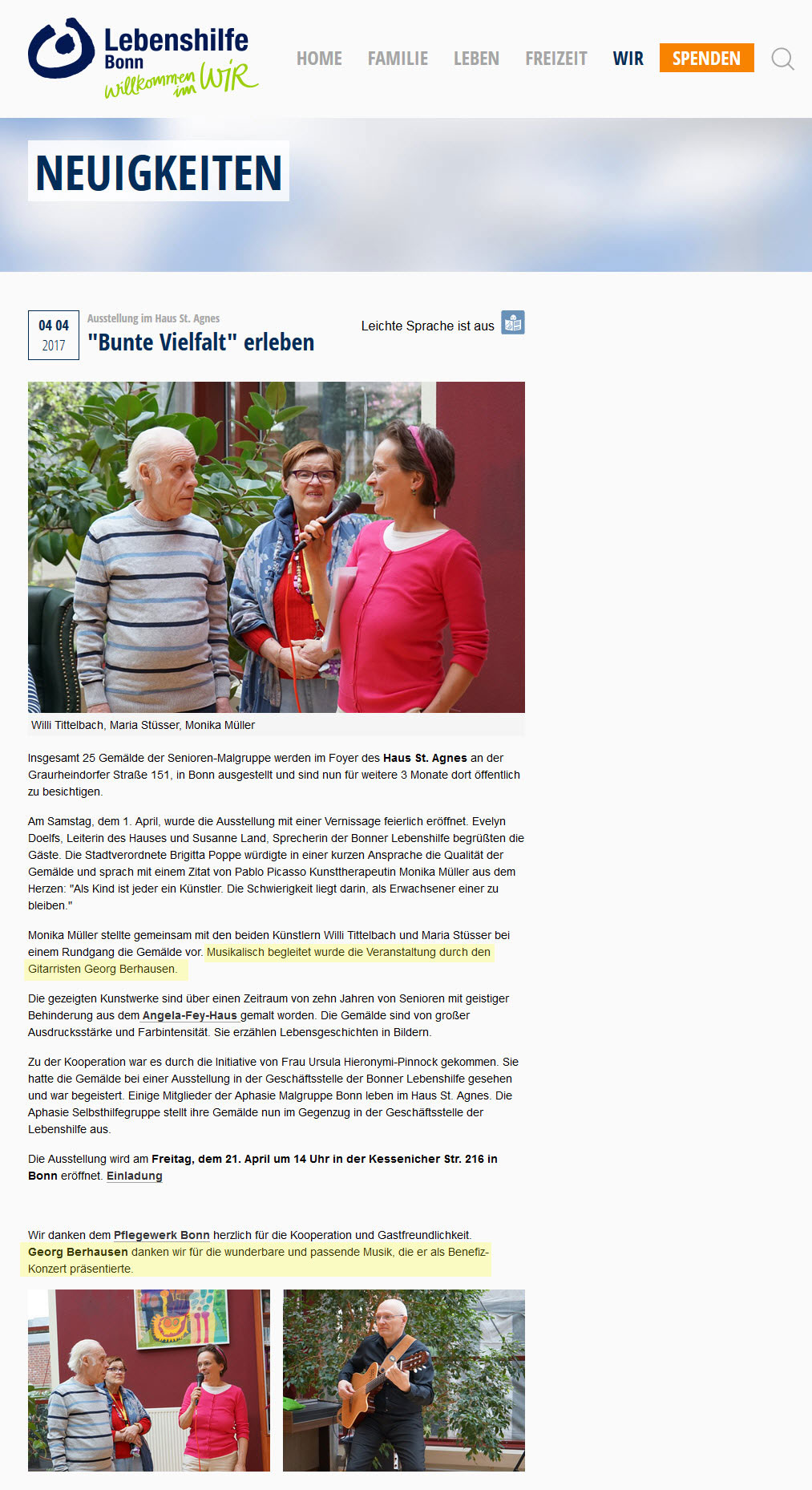 Feedback des Benefiz Auftritts für die Lebenshilfe Bonn im St. Agnes Stift, Bonn am 01.April 2017.